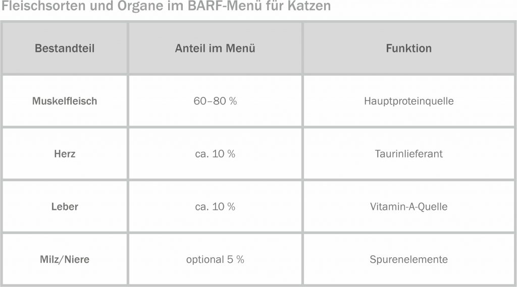Wichtige Bestandteile eines BARF-Menüs für Katzen