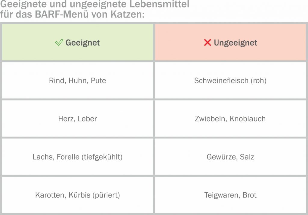 Welche Lebensmittel gehören in BARF-Menü für Katzen?