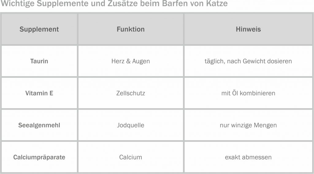 Beim Barfen ist das richtige Verhältnis der Nährstoffe entscheidend. Fehlen Calcium, Taurin oder Vitamine, drohen schnell Mangelerscheinungen, die bei Katzen schwerwiegende Folgen haben können.