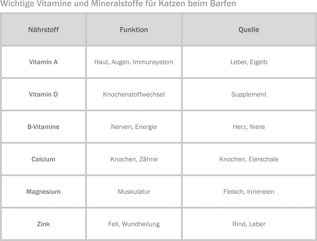 Auch beim Barfen braucht Deine Katze Mineralstoffe, Vitamine und Fett,